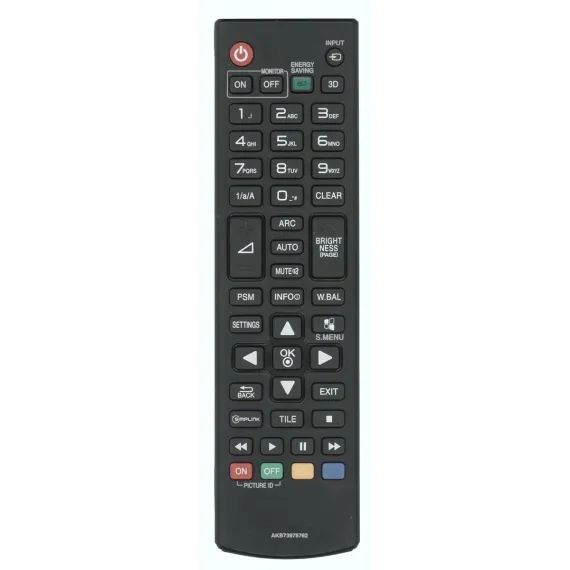 Control your LG display with ease. The AKB73975762 remote delivers straightforward operation for monitors and commercial displays. Durable construction handles frequent use in professional environments, while responsive buttons ensure quick adjustments to brightness, contrast, and input settings. A reliable solution for offices, retail spaces, and digital signage installations.