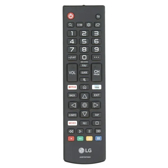 The AKB75675304 remote control is designed for use with select LG Smart TVs. This IR remote provides direct access to apps like Netflix, Prime Video, and Movies (Shortcuts may vary) with no programming required. It is compatible only with LG TVs and does not support voice, Bluetooth, or RF features.
