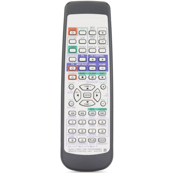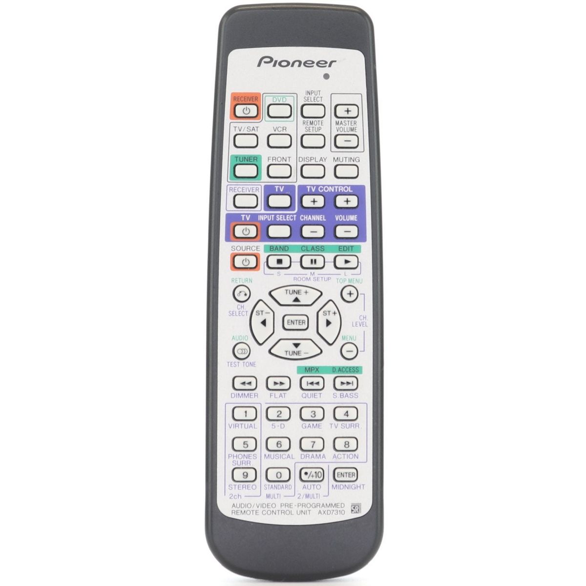 The AXD7310 Slim DVD Home Theater System Remote Control delivers precise and comprehensive control for compatible Pioneer home theater systems. It facilitates effortless management of DVD playback, audio settings, and system functions, ensuring a seamless entertainment experience. Engineered with user comfort and durability in mind, this remote is an ideal replacement to maintain full operational access to your home theater system.