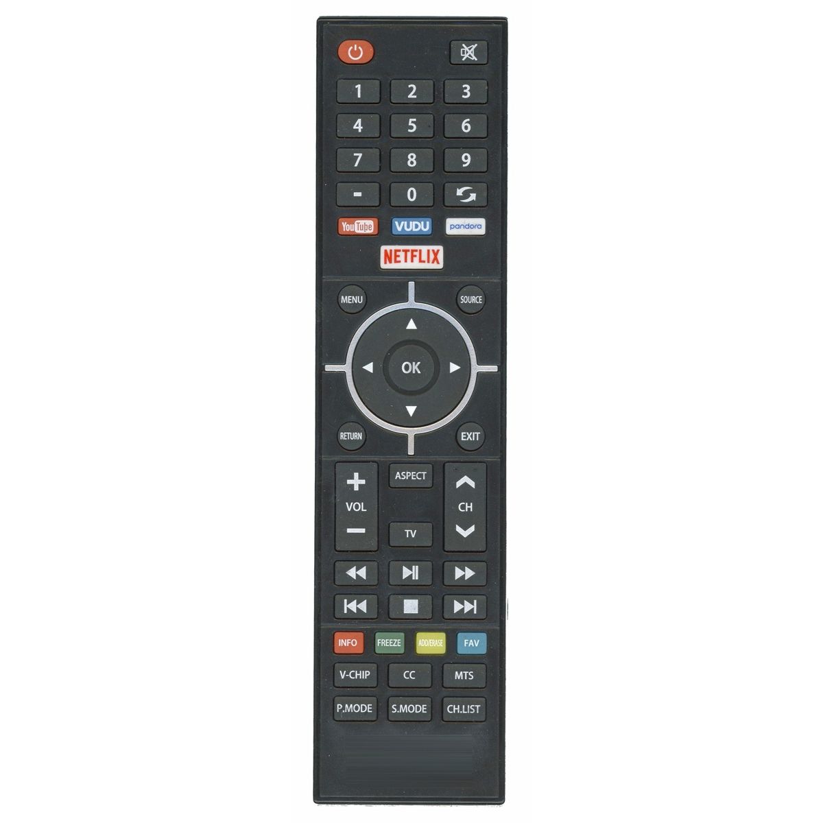 Stream your favorites instantly with the RCA SmarTVirtuoso remote. Featuring dedicated buttons for Netflix, YouTube, Vudu, and Pandora, you'll jump straight to your go-to entertainment. Designed for RCA smart TVs, this remote combines convenience with intuitive controls for a seamless viewing experience.