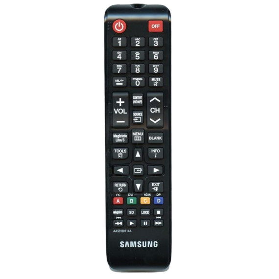 The AA59-00714A remote control is engineered for precise and reliable operation of compatible Samsung monitor display TVs. Its intuitive button layout ensures effortless access to essential functions, delivering a seamless user experience. Built to Samsung's exacting standards, this remote offers durable performance and optimal compatibility, making it a dependable replacement or spare for maintaining full control of your Samsung display.