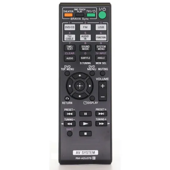 The RM-ADU078 remote control is engineered for precise compatibility with select Sony receivers, providing full access to sound settings, input selection, and system controls. It delivers responsive command execution to optimize your audio experience and maintain seamless interaction with your receiver. As an original replacement remote, the RM-ADU078 preserves the high performance and ease of use expected from Sony audio equipment.