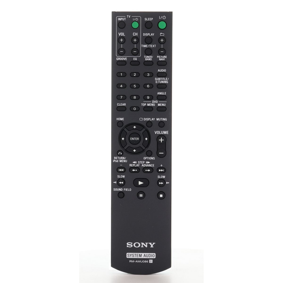 The RM-AMU086 is a genuine infrared audio remote control designed specifically for Sony audio systems, including models WHGSLK1I, WHGSLK2I, and WHGSLK2IV. This remote provides direct control over essential audio functions and requires no programming for supported units.