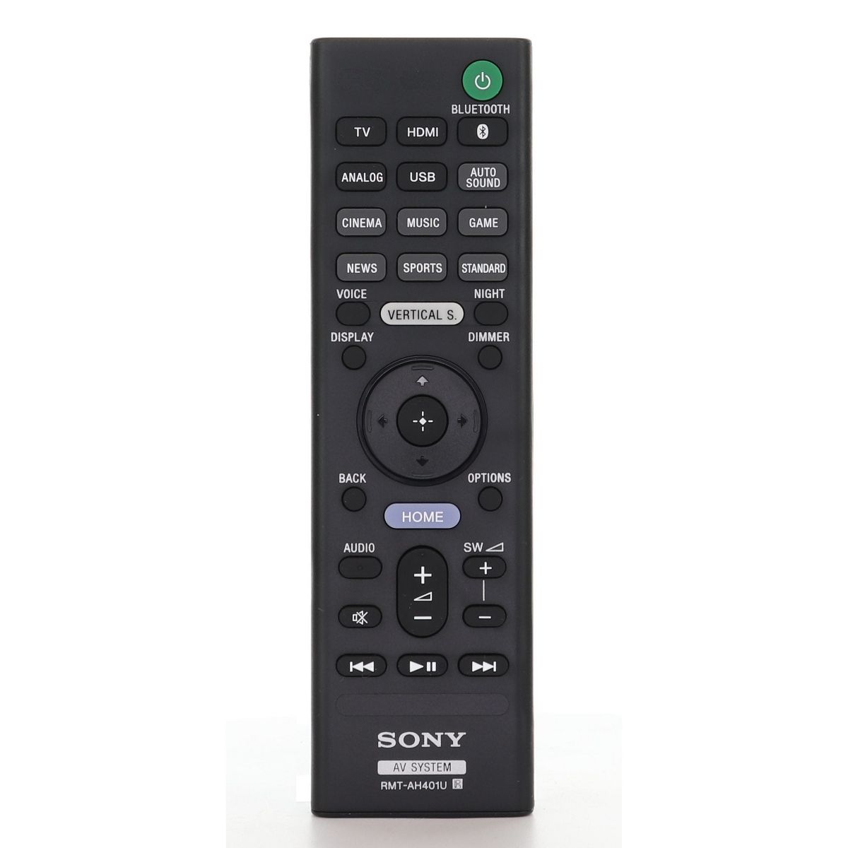 The Sony RMT-AH401U is the original remote control designed for the Sony HTX9000F sound bar system. It offers full access to sound modes, volume, input selection, and more—no programming needed when used with compatible models.