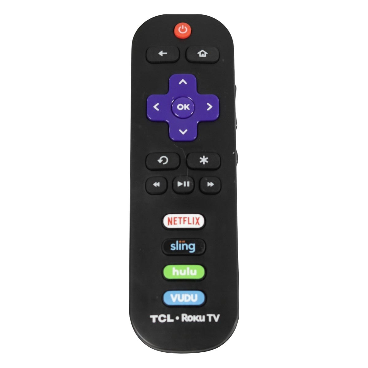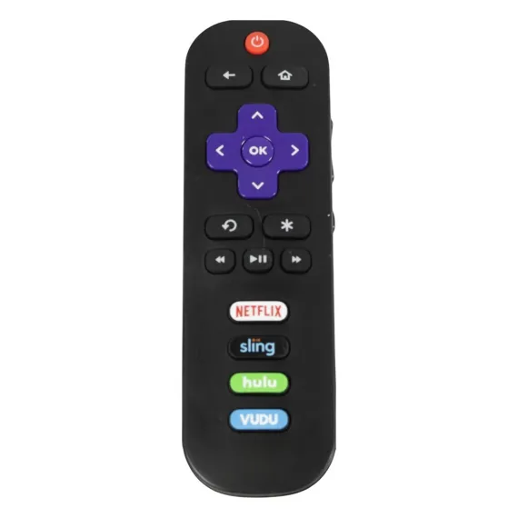 The RC280 remote control is made for use with select TCL Roku TVs and comes pre-programmed for immediate use. It includes dedicated shortcut buttons for Netflix, Sling, Hulu, and Vudu, offering quick access to popular streaming services.