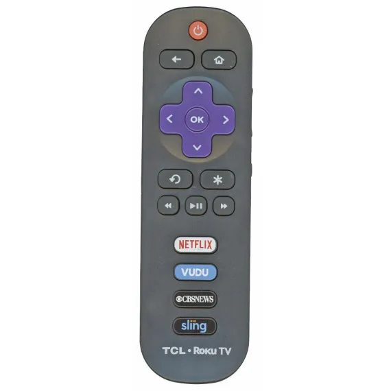 The RC280 remote control is designed for Roku-enabled TCL TVs and offers direct access to popular streaming apps, including Netflix, Vudu, CBS, and Sling. No programming is required—simply insert batteries and begin controlling your compatible TCL Roku TV instantly.