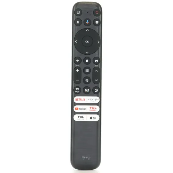 The TCL RC813 FMB1 remote control is designed for Google TV-enabled TCL TVs and provides seamless operation with no programming required. It supports voice commands and features dedicated app shortcut buttons, including Netflix, Prime Video, YouTube, TCL Home, and Apple TV.
