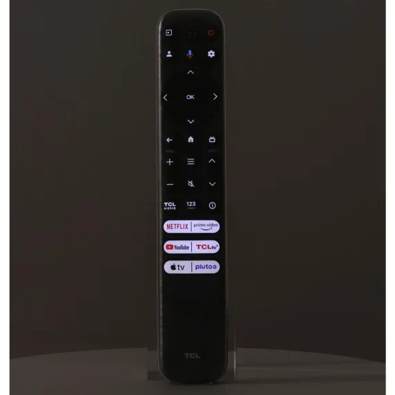 The RC923 FMB2 Google TV Remote Control with Motion Backlight, model 21001-000121 (2025), offers seamless access to Netflix, Prime Video, YouTube, TCL Channel, TCL TV, Apple TV, and Pluto, enhancing your streaming experience with intuitive functionality and easy navigation.