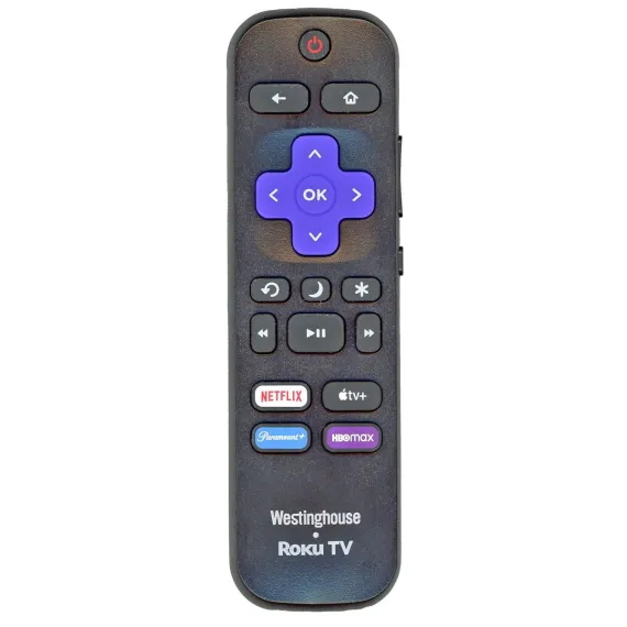 The RC-ALIR 2024 Roku TV Remote Control is a pre-programmed IR remote made for Westinghouse Roku Smart TVs. It includes dedicated app shortcut buttons for quick access to Netflix, Apple TV+, Paramount+, and HBO Max (Shortcuts may vary). This remote will not work with Roku streaming sticks or boxes and does not include voice or RF functionality.