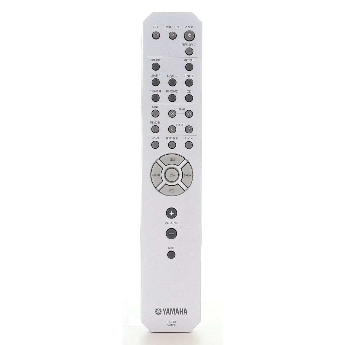 The RAS13 remote control is an original infrared remote designed for select Yamaha stereo amplifiers. It provides full access to power, volume, input selection, and tone control functions, delivering precise performance for your home audio system. No programming is required for compatible models.