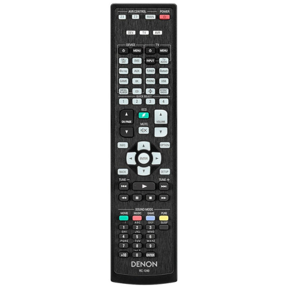 The RC-1240 is the original IR remote control for select Denon A/V receivers. It provides full access to receiver functions and is ready to use with no programming required. This remote is IR-only and does not support RF or voice features.