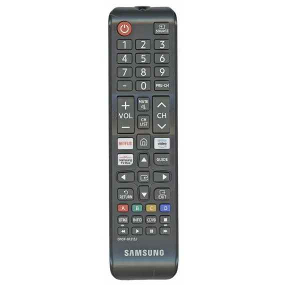 The Samsung BN59-01315J IR TV Remote Control is designed for select 2018 Samsung Crystal UHD HDR TVs. It provides simple and reliable operation with dedicated shortcut buttons for Netflix, Prime Video, and Samsung TV Plus. No programming is required for the listed models, and this remote will not work with non-Samsung devices.