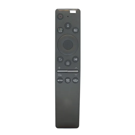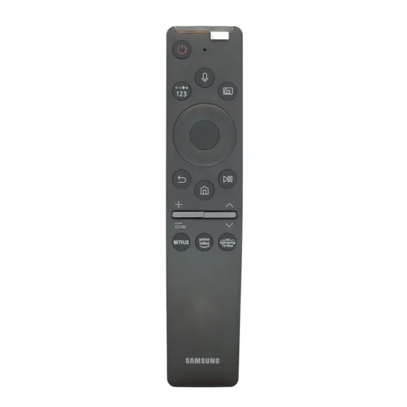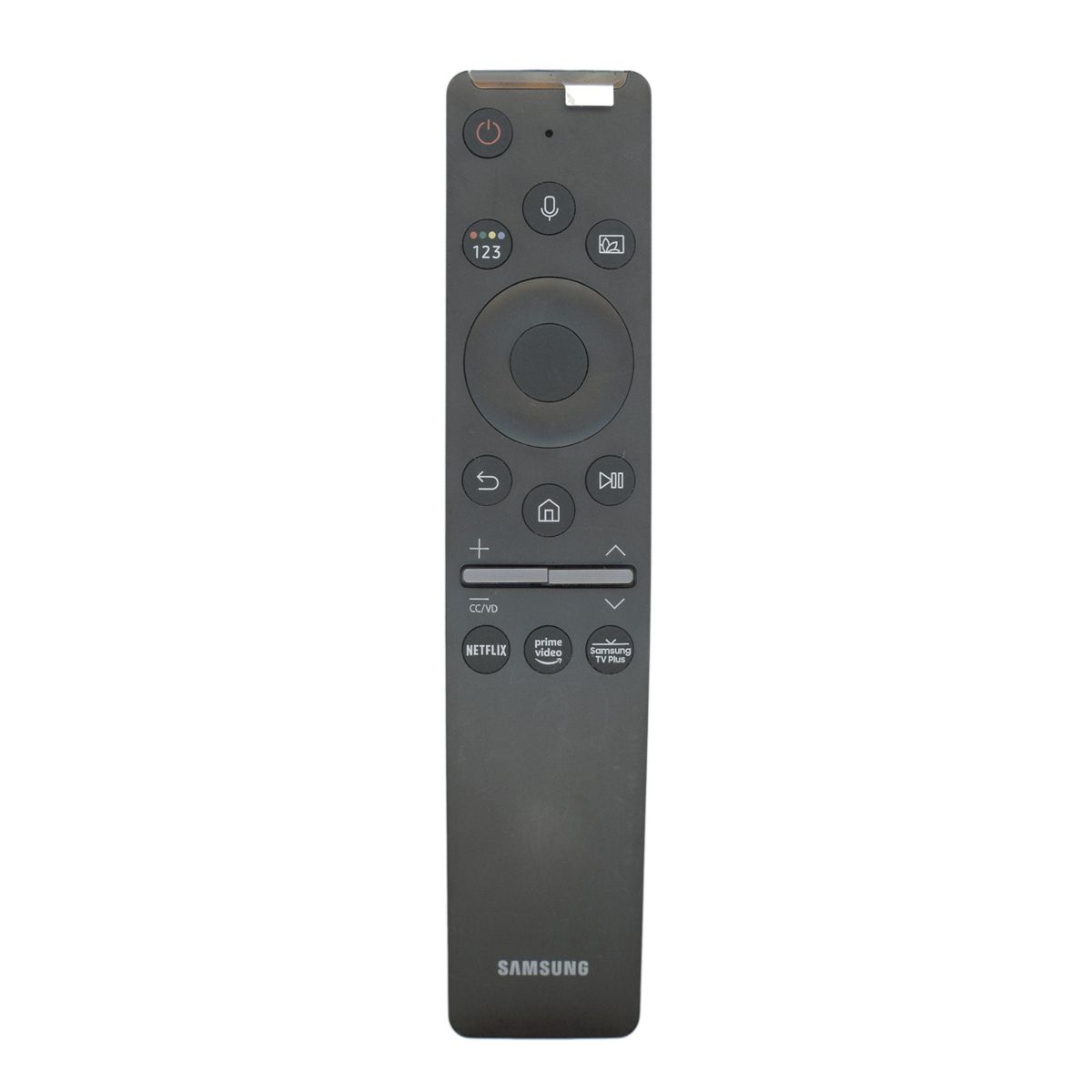 The BN59-01330C RF Voice TV Remote Control delivers precise wireless control with RF technology, eliminating the need for direct line-of-sight. Equipped with dedicated buttons for Netflix, Prime Video, and Samsung TV Plus, it streamlines access to popular streaming platforms. The integrated voice command feature enhances navigation and content search, offering a sophisticated and convenient user experience tailored for 2020 Samsung Smart TVs.