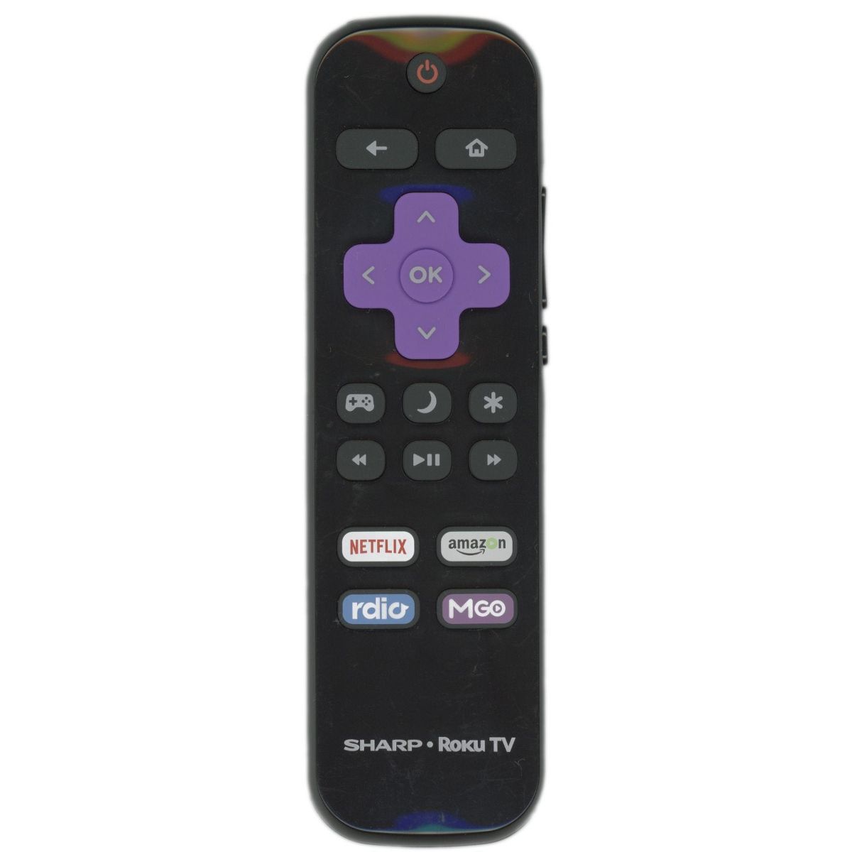 The LC-RCRUS-16 is a purpose-built Roku remote designed for 2016 Sharp television models, delivering intuitive control over your connected entertainment. Featuring dedicated shortcut buttons for Netflix, Amazon Prime Video, and Rdio, this remote grants one-touch access to premium streaming services without navigating menus.