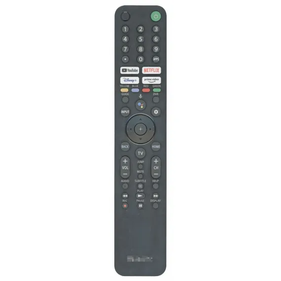 The RMF-TX600 remote control is designed for select Sony Smart TVs and supports voice control along with shortcut access to Google Play and Netflix. Built with a premium metal front and no backlight, it provides sleek, reliable functionality for compatible models. Originally supplied with models: XBR77A9G, XBR98Z9G, and more.