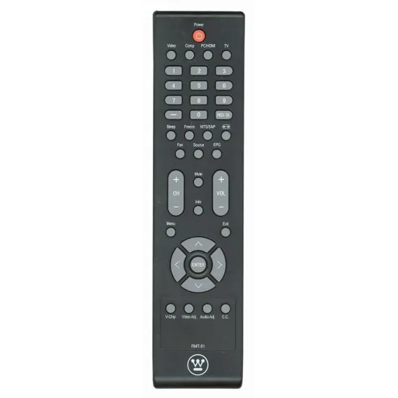 The RMT51 TV Remote Control (RM-T51) is engineered for optimal compatibility with select Westinghouse TV models. It provides precise control over essential functions, from channel selection to volume adjustment, ensuring a smooth and intuitive user experience. Crafted to meet strict quality standards, this remote delivers dependable performance and enhances your television operation with ease and accuracy.