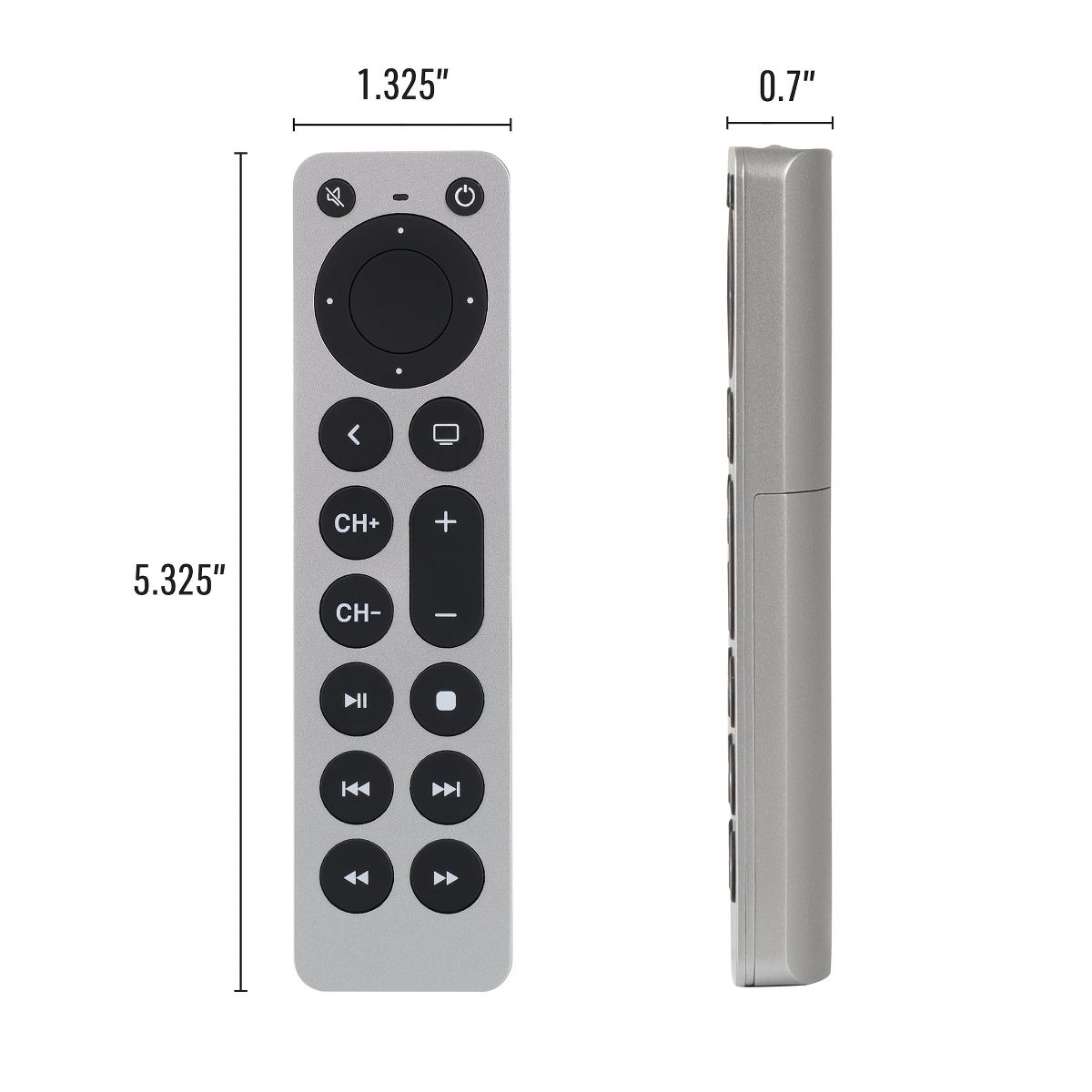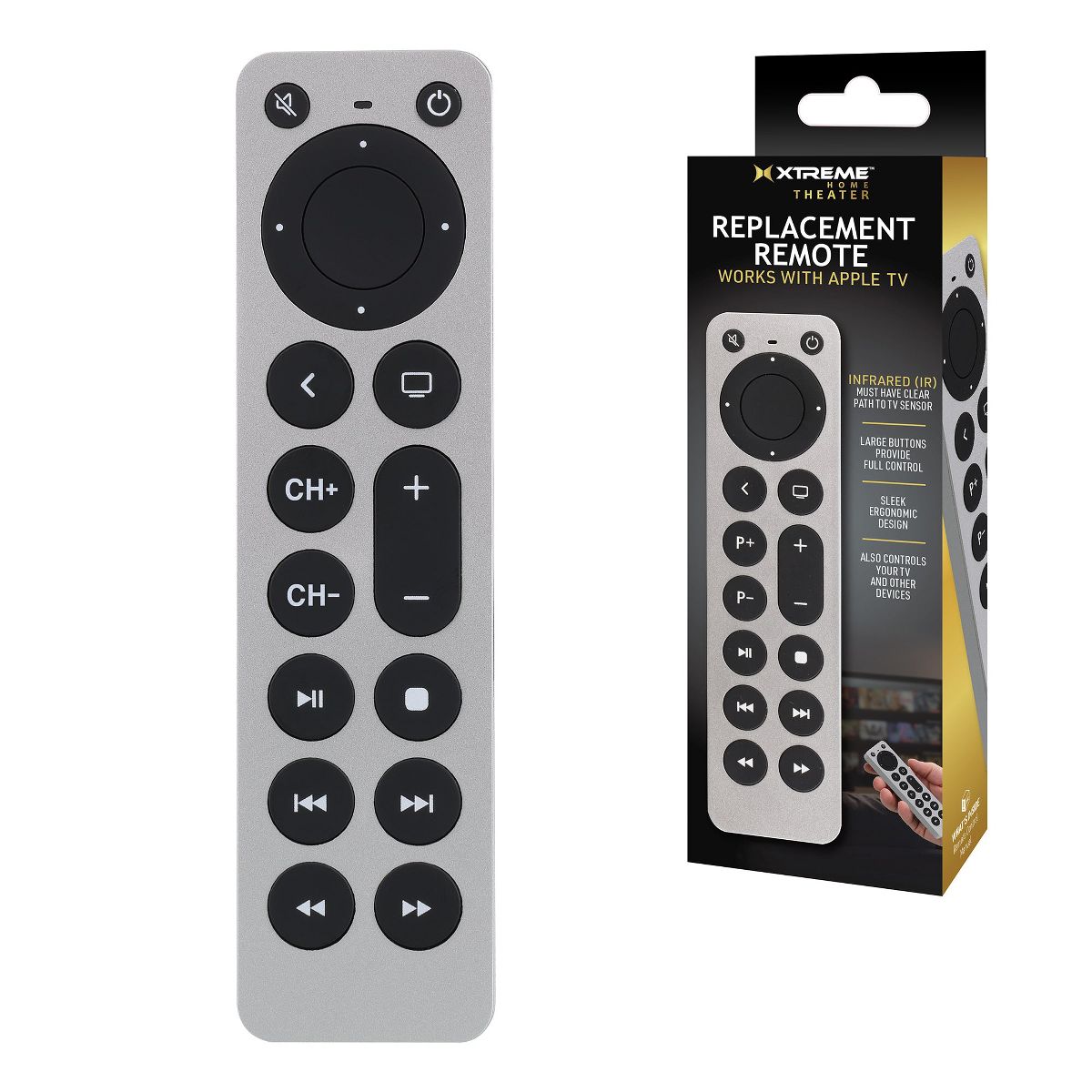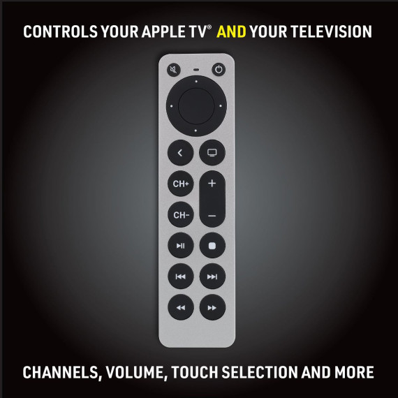 Xtreme Universal Apple TV Silver Remote Replacement for 1st-5th Generation, Controls TV & Apple TV, Large Buttons
