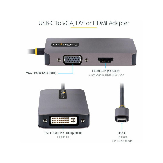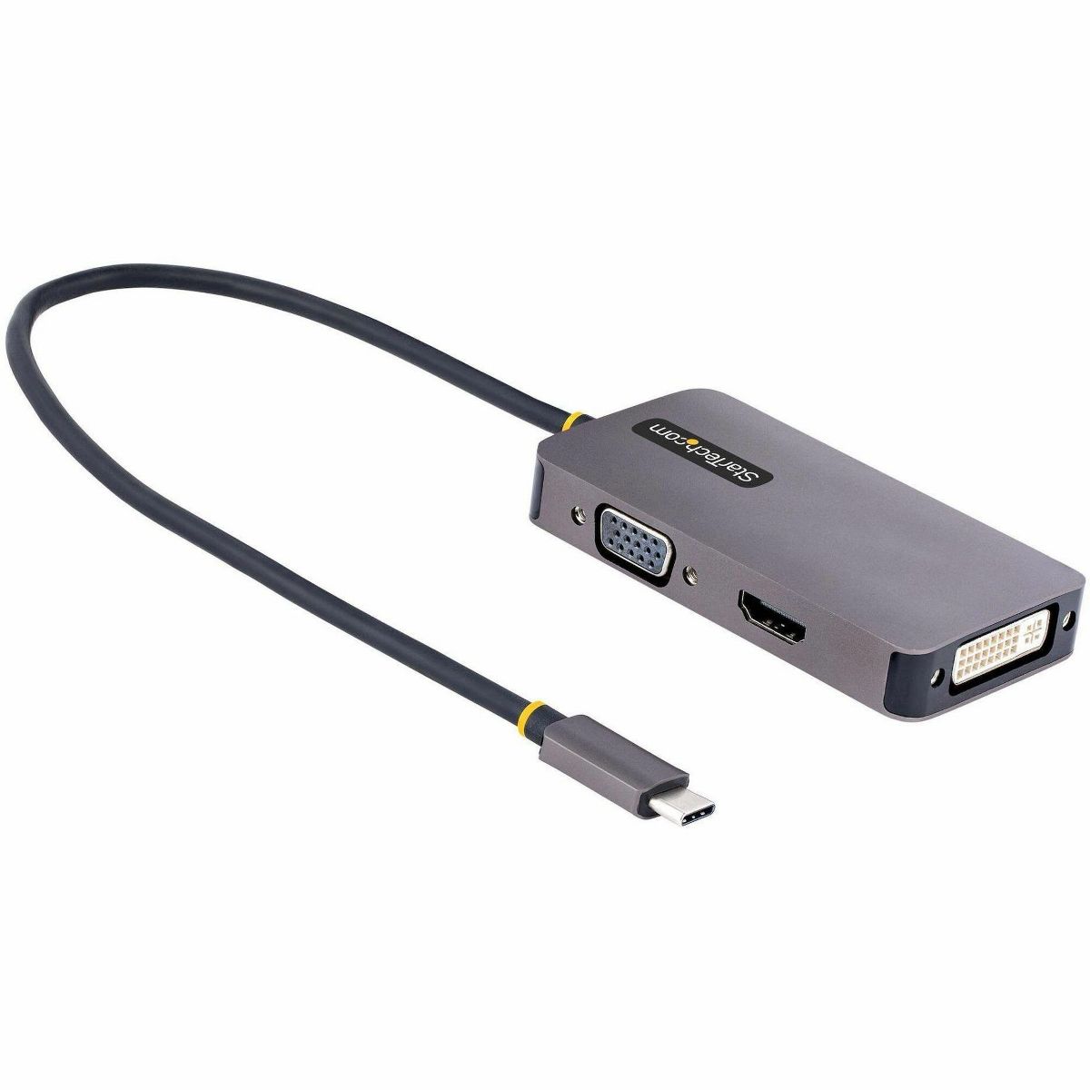 StarTech.com USB-C Multiport Video Adapter, HDMI DVI VGA Adapter, 4K 60Hz, Model 118USBCHDMIVGADVI