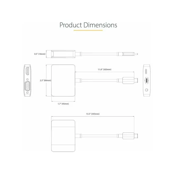 The StarTech.com USB-C Multiport Video Adapter is a portable solution designed for connecting USB Type-C devices to HDMI and VGA displays. With up to 100W of Power Delivery, this adapter facilitates versatile displays for various computing needs. It supports single or dual-mirrored video configurations, making it an ideal choice for presentations and multitasking. Additionally, the extra-long attached cable helps reduce strain on device ports, ensuring a seamless experience whether you're at home or on the go.