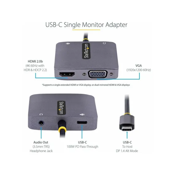 StarTech.com USB C Video Adapter, HDMI VGA Multiport Adapter, 3.5mm Audio Output, 122USBCHDMI4KVGA