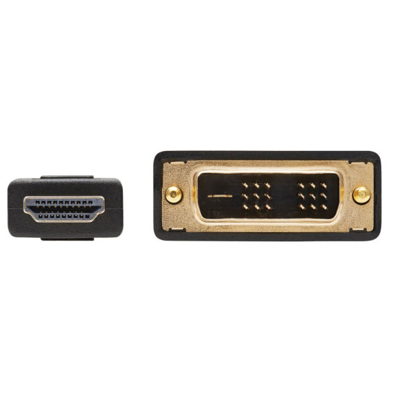 The Tripp Lite® by Eaton® 6-ft. HDMI to DVI Digital Video Cable allows interconnection between digital display devices, such as DTVs (Digital Television), such as HDTVs and projectors, to digital source devices, such as set-top boxes, DVD/DVD-R players, and AV receivers. HDMI® DTVs will display video received from existing DVI-equipped products, and DVI-equipped TVs will display video from HDMI® sources. The HDMI®/DVI adapter cable does not support audio._