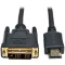 The Tripp Lite® by Eaton® 6-ft. HDMI to DVI Digital Video Cable allows interconnection between digital display devices, such as DTVs (Digital Television), such as HDTVs and projectors, to digital source devices, such as set-top boxes, DVD/DVD-R players, and AV receivers. HDMI® DTVs will display video received from existing DVI-equipped products, and DVI-equipped TVs will display video from HDMI® sources. The HDMI®/DVI adapter cable does not support audio._
