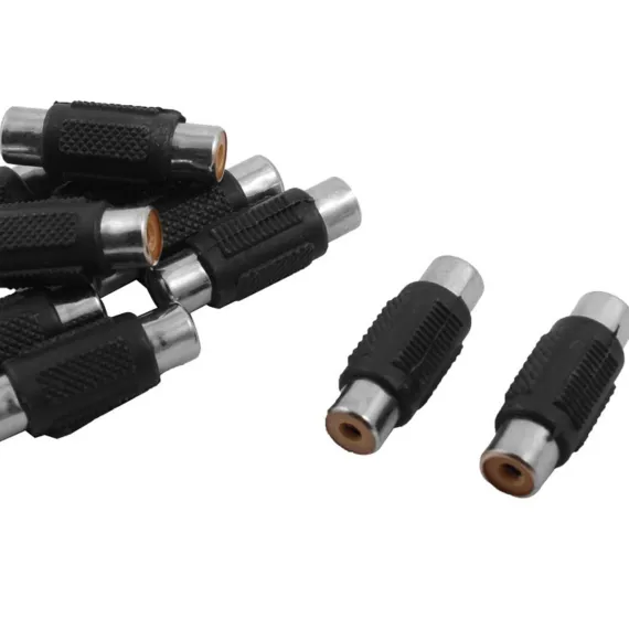 The video RCA female-to-female coupler is a versatile accessory designed for seamless connections between various audio and video devices. This coupler is specifically designed for use with phono, speaker, RCA cables, and amplifiers. These RCA adapters are designed to couple stereo cables with phone plugs. Use this RCA female to RCA female connector to connect RCA cables. These plug-and-play RCA couplers help tidy up your audio-video stereo wiring and prevent entanglement. The product is constructed using metal materials, ensuring stable signal transmission and a clear audio. Its compact size and lightweight design save space while organizing RCA cables. Package includes 10 RCA Female to female-to-female connectors. Please note that colors on the screen may not accurately reflect the true color due to individual computer monitor differences. Slight deviations in measurements may occur due to different measuring methods or tools.