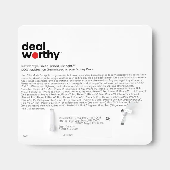 Stay connected with versatility using the 3inch Lightning to Aux Adapter in White from dealworthy™. This lightweight adapter provides a seamless link between Lightning and 3.5mm audio devices, making it perfect for listening to music or taking calls on newer smartphones, tablets or laptops without a headphone jack. With a compact length and male-to-male connection, it’s easy to carry and use anywhere. Ideal for travel or everyday use, this adapter ensures quality sound in a simple, convenient design.