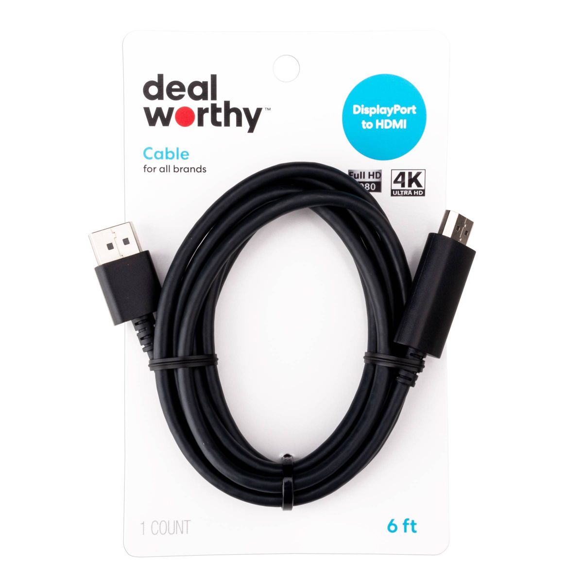 6' Display Port to HDMI Cable - dealworthy™ Black