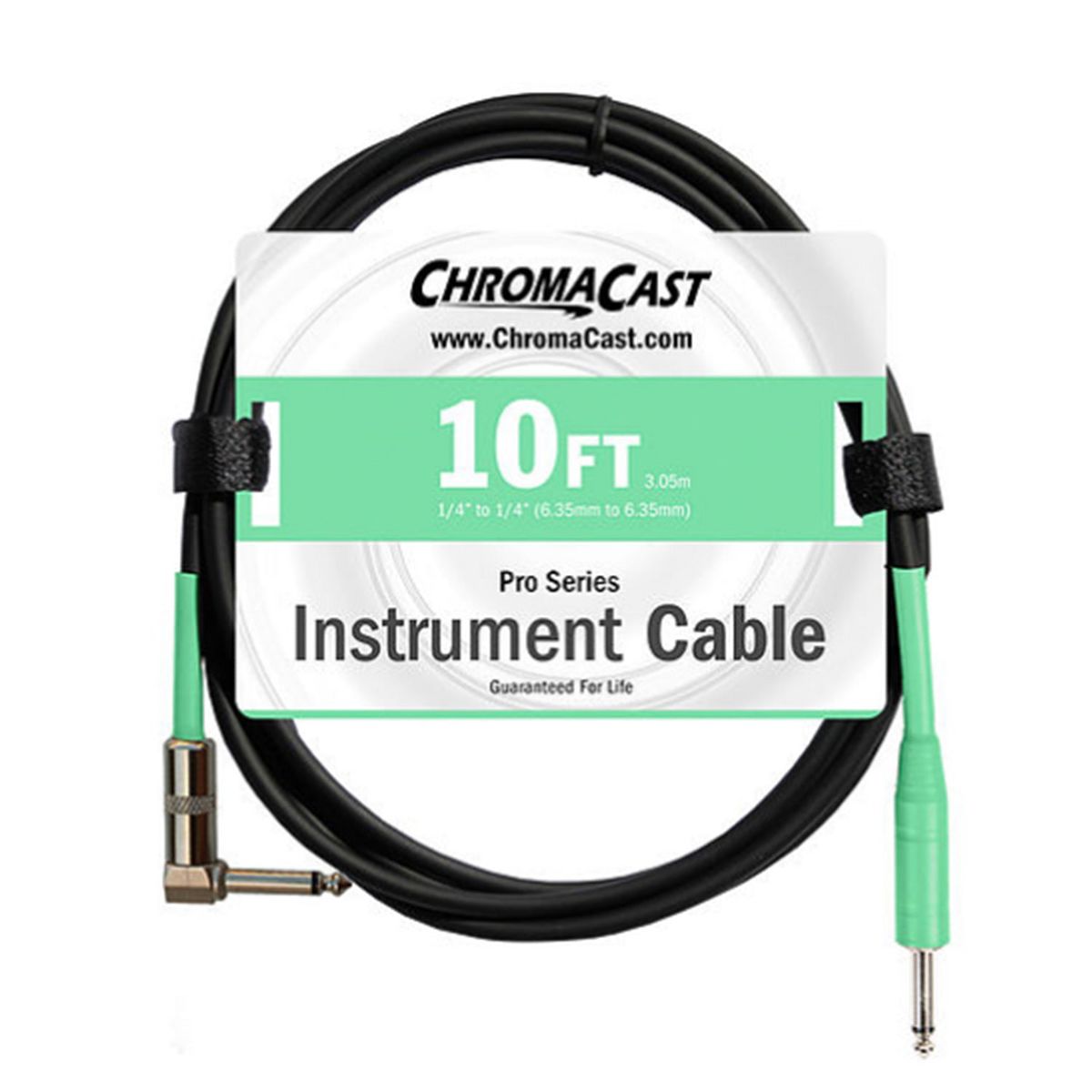 ChromaCast Pro Series Instrument Cable, Straight - Angle, Surf Green, 10 feet