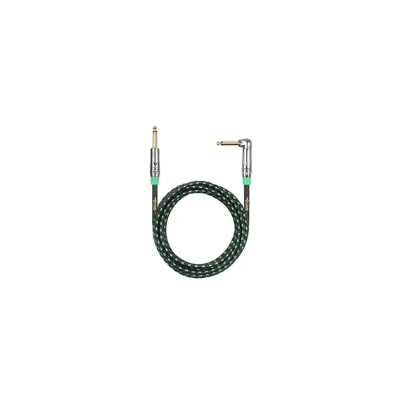 Clef Audio Labs 6.35mm TS to 6.35mm TS Straight to Angled, Black Chrome Zinc Alloy Shell/Green Braided - 10FT - 1PK