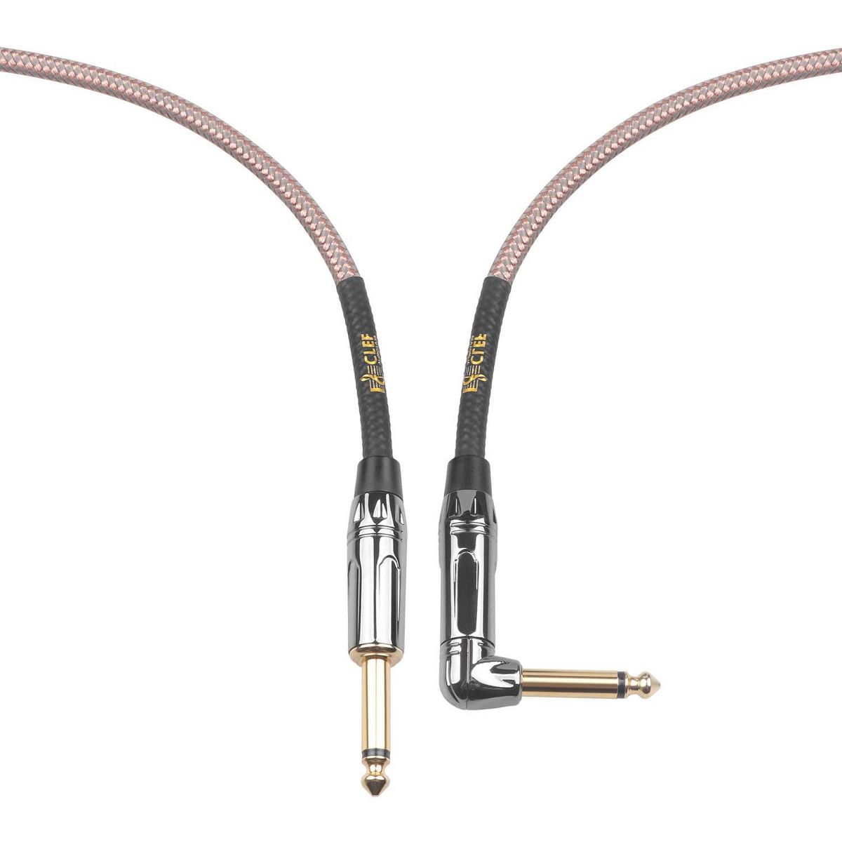 Clef Audio Labs 6.35mm TS to 6.35mm TS Straight to Angled, Black Chrome Zinc Alloy Shell/Grey Copper Braided - 10FT -1PK