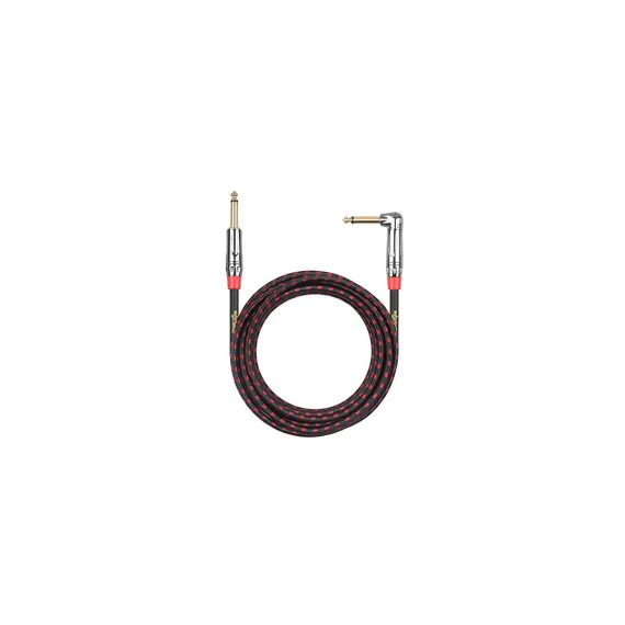 Clef Audio Labs 6.35mm TS to 6.35mm TS Straight to Angled, Black Chrome Zinc Alloy Shell/Red Braided - 15FT - 1PK