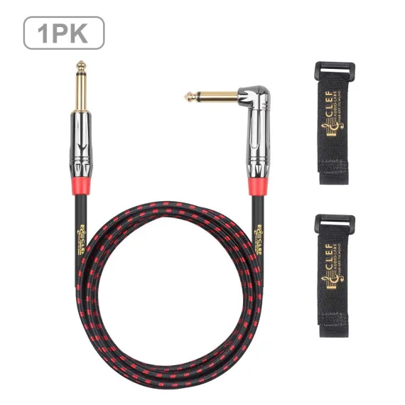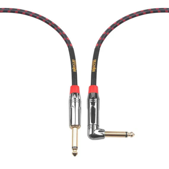 Clef Audio Labs 6.35mm TS to 6.35mm TS Straight to Angled, Black Chrome Zinc Alloy Shell/Red Braided - 6FT -1PK