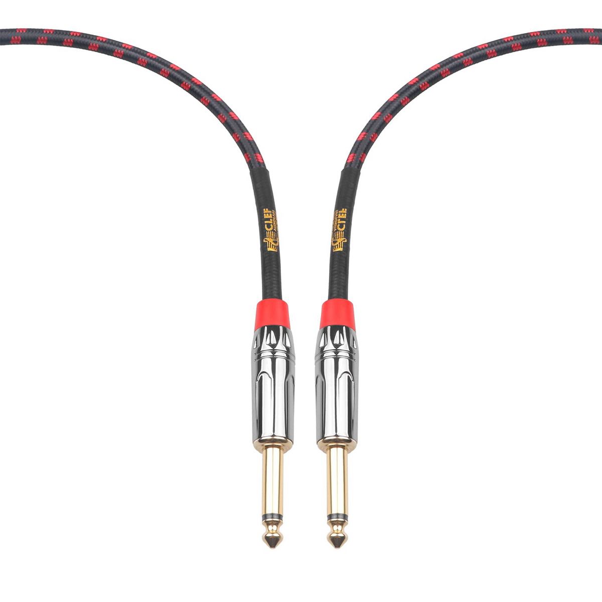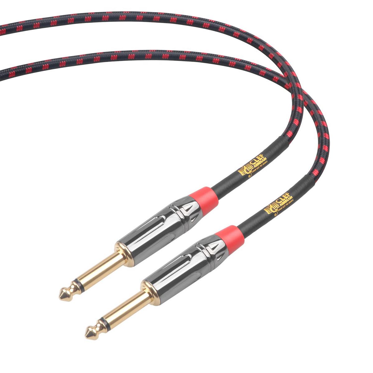 Clef Audio Labs Instrument Guitar Cable, 15ft - 1/4 inch TS Straight to Straight Electric bass Guitar AMP Cord Red Braided Jacket