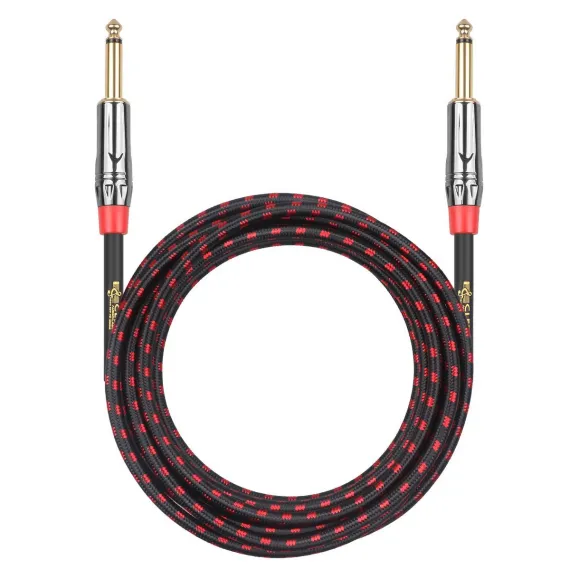 Clef Audio Labs Instrument Guitar Cable, 15ft - 1/4 inch TS Straight to Straight Electric bass Guitar AMP Cord Red Braided Jacket