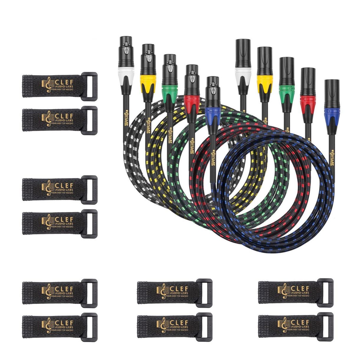 Clef Audio Labs XLR Male to XLR Female, Black Zinc Alloy Shell/5 Color Braided - 10FT - 5PK
