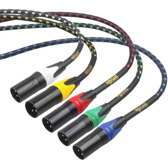 Clef Audio Labs XLR Male to XLR Female, Black Zinc Alloy Shell/5 Color Braided - 10FT - 5PK