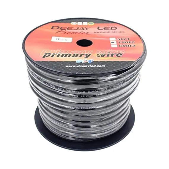 * Zero gauge thick type power cable for heavy current usage. * 100 foot length on spool. * Pure copper content. * Stranded wire style with thick black outer jacket.* Jacket Color: BLACK * Usage: All Purpose Vehicular * Conductor Material: OFC Oxygen Free Copper * Wire Gauge: 0 AWG * Average Strand Density: 4704 Strands x 0.12 Millimeters
