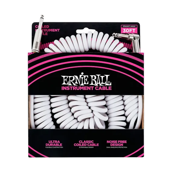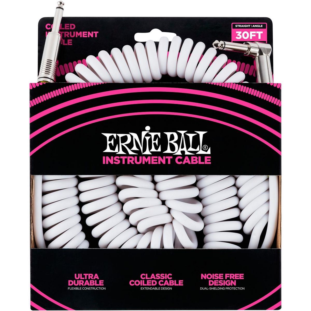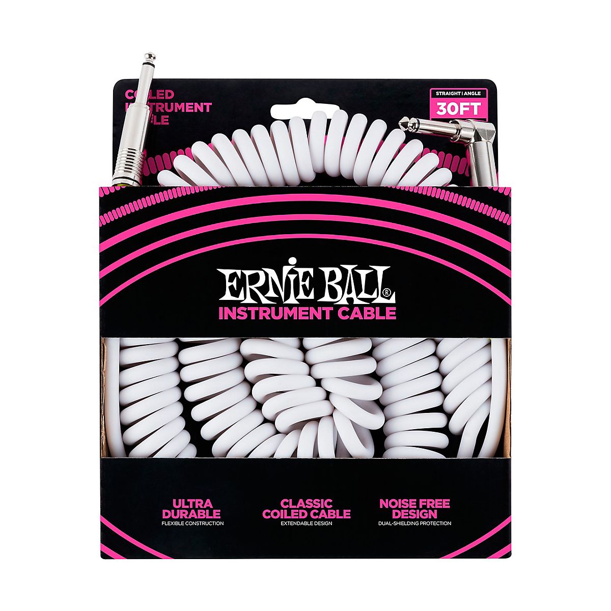 Ernie Ball Coiled Ultraflex Straight-Angle Instrument Cable - White 30 ft.