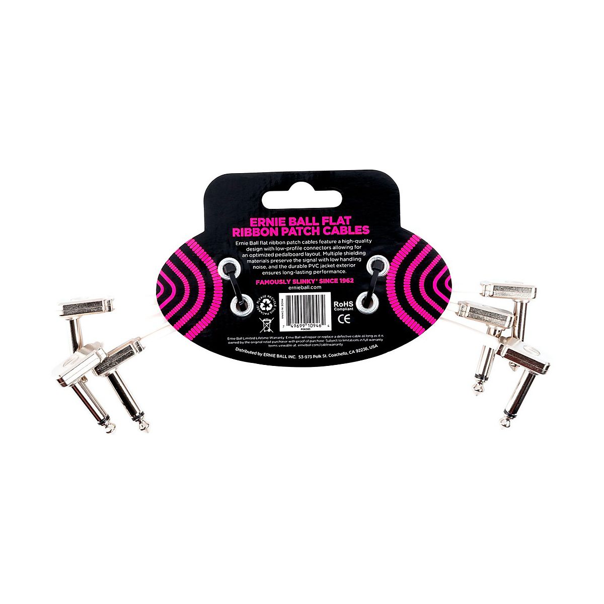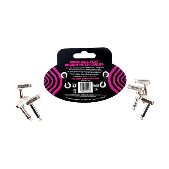 Ernie Ball flat ribbon patch cables feature a high-quality design made with superior components that are built to last. The flat cable design and low-profile connectors allow for optimized pedalboard lat and cable routing. Multiple shielding materials preserve the signal with low handling noise, and the durable PVC jacket exterior ensures long-lasting performance. This is a pack of three cables.