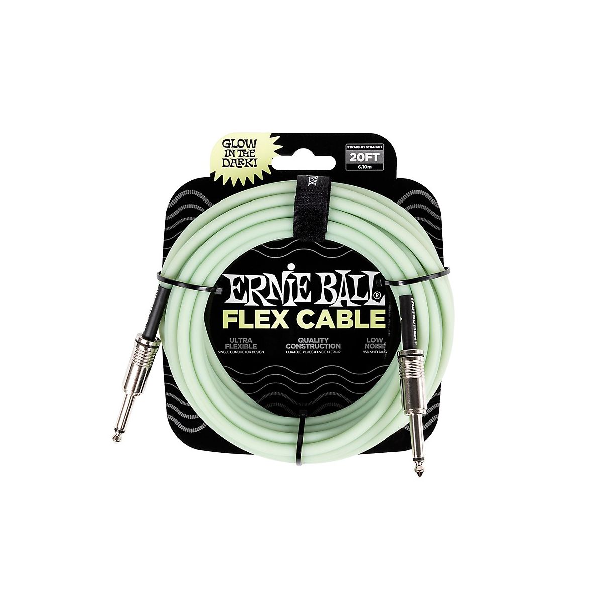 The Ernie Ball Glow-in-the-Dark flex cable provides luminous style and reliable performance. can elevate playing experience with its glow-in-the-dark PVC jacket and high-quality components built to last. The single-conductor design delivers crystal-clear tone and extra flex for easy coiling, while 95% shielding rejects noise and preserves signal. The durable PVC jacket ensures lasting quality gig after gig. Whether practicing at home or performing on stage, the Ernie Ball Glow-in-the-Dark Flex cable adds visual flair and dependable functionality to setup.