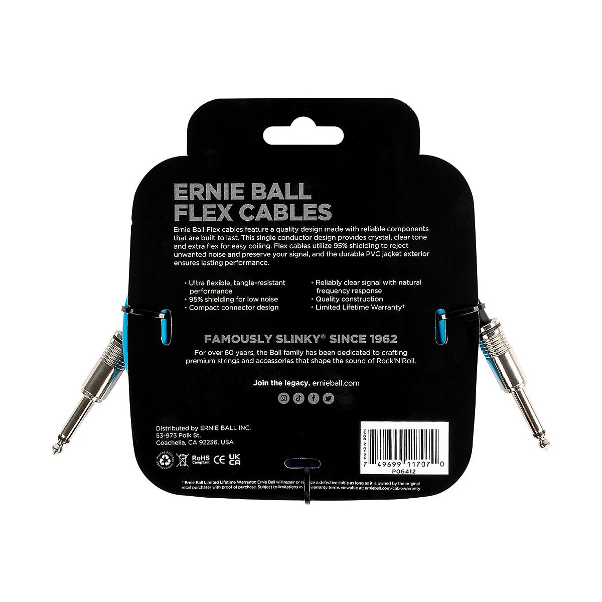 Ernie Ball Flex straight to straight instrument cables feature a quality design made with reliable components that are built to last. This single conductor design provides crystal-clear tone and extra flex for easy coiling. Flex cables utilize 95% shielding to reject unwanted noise and preserve signal, and the durable PVC jacket exterior ensures lasting performance.