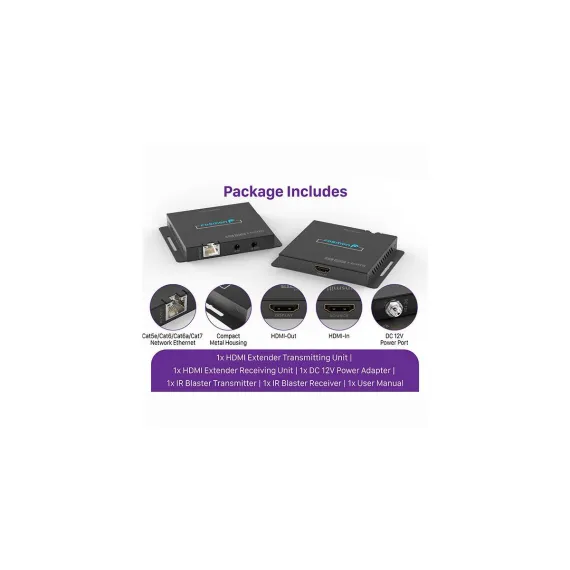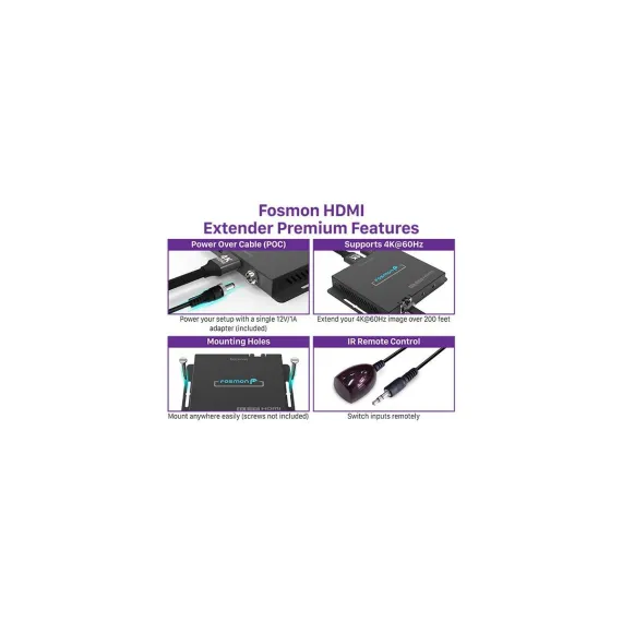 Fosmon’s extender splitter simplifies device control effortlessly with its IR transmitter and receiver integration. Enable infrared remote control from the HDMI receiver to equipment on the HDMI transmitter, ensuring user-friendly operation that saves time and effort.