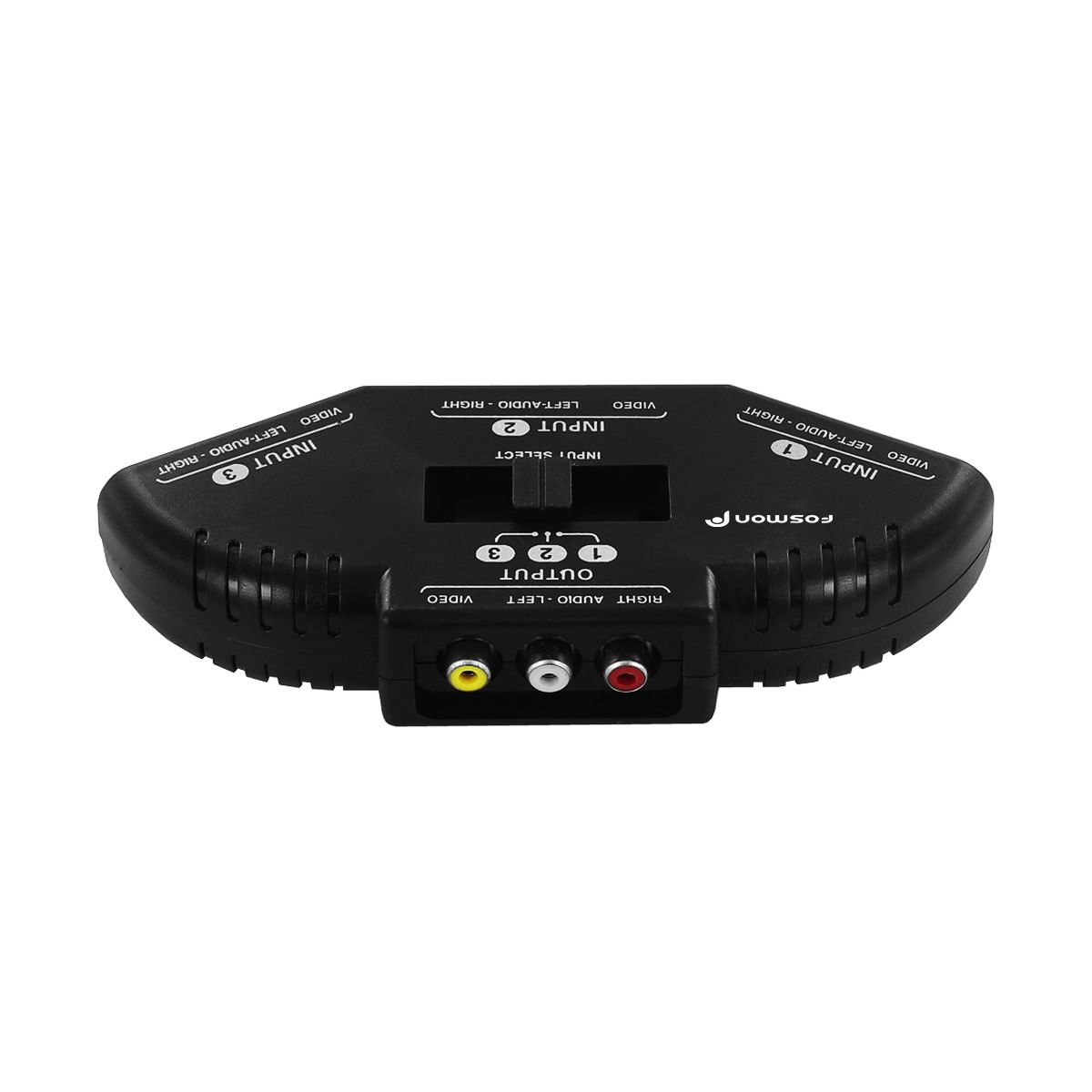 Fosmon 3-Way Composite AV Audio Video RCA Splitter + Male to Male RCA Audio Cable, 3 in 1 Out RCA Switcher Box for TV, XBOX, DVD, PS2, Wii