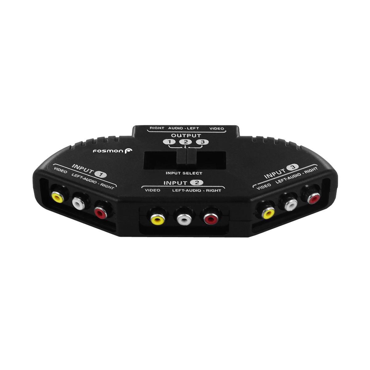 3-in-1 composite audio/video selector switch box (black) that connects up to 3 devices to your TV such as XBOX, DVD, VCR, PS2 and Wii