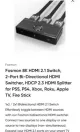 - Output Ports HDMI x2 (1 in/2 out) / HDMI x1 (2 in/1 out)