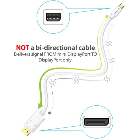 - Connects from Mini DisplayPort (Mini DP or mDP)/ThunderBolt/Thunderbolt 2 to DisplayPort, not a bi-directional adapter