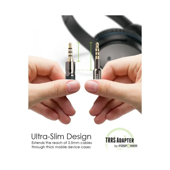 FosPower 4-conductor TRRS AUX stereo audio adapter has an additional conductor that allows you to connect your 3.5mm (1/8") headset, and supports microphone and volume control/play/pause/call/hang-up features. It is also compatible with credit card readers such as Square Reader, Amazon Register Card Reader, and PayPal Here Card Reader. Also works with voice commands such as "Siri" and "Ok Google".