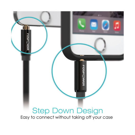 The beveled step-down design ensures FosPower's premium stereo audio cable is fully seated into audio ports, remaining compatible with the majority of cases in the market.